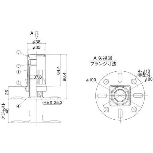 フランジ型角パイプ用アジャスト 40角 TO-4070-6 TA4859