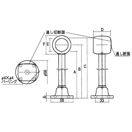 サイズ(mm):A/503,B/519,C/535,D/41,E/φ32.2,F/φ45,パイプL/470,ボルトL/490