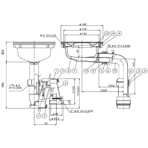 仕様1:サイズ(排水口部):Φ180×H85.4mm