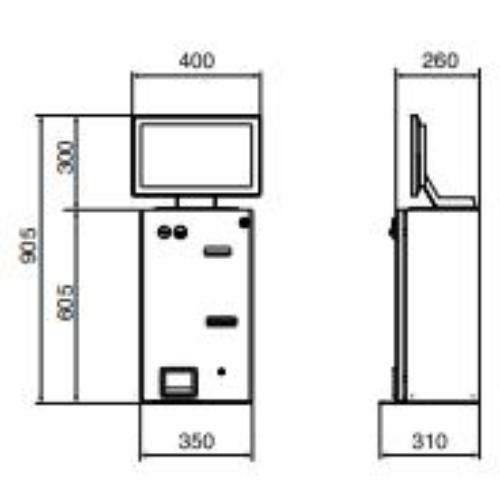 外形寸法:幅350×奥行310×高さ905(mm) ※転倒防止板および突起部含む、本体:幅350×奥行260×高さ600(mm)
