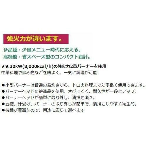 9.30kW(8,000kcal/h)の強火力2重バーナーを使用