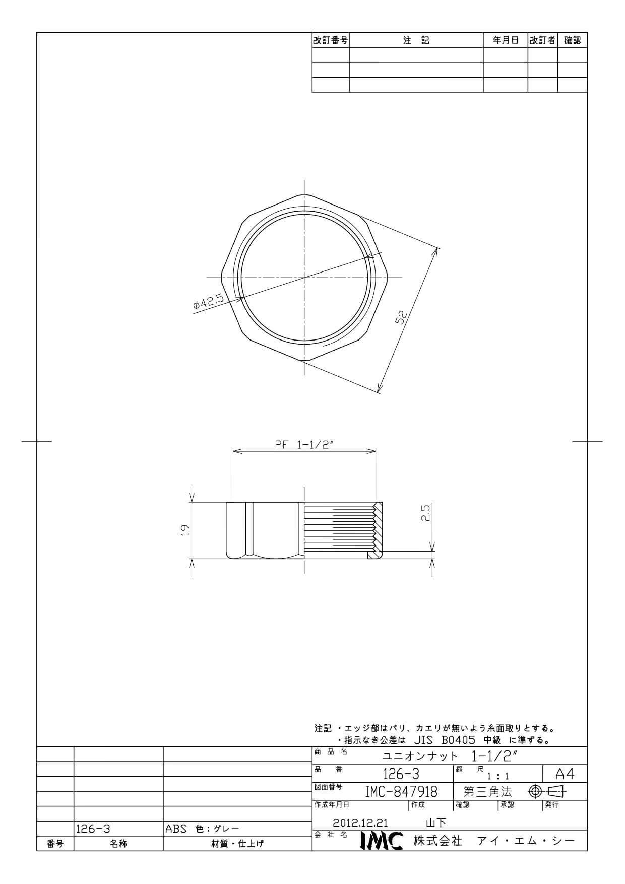 商品名:126-3 1-1/2" ユニオンナット