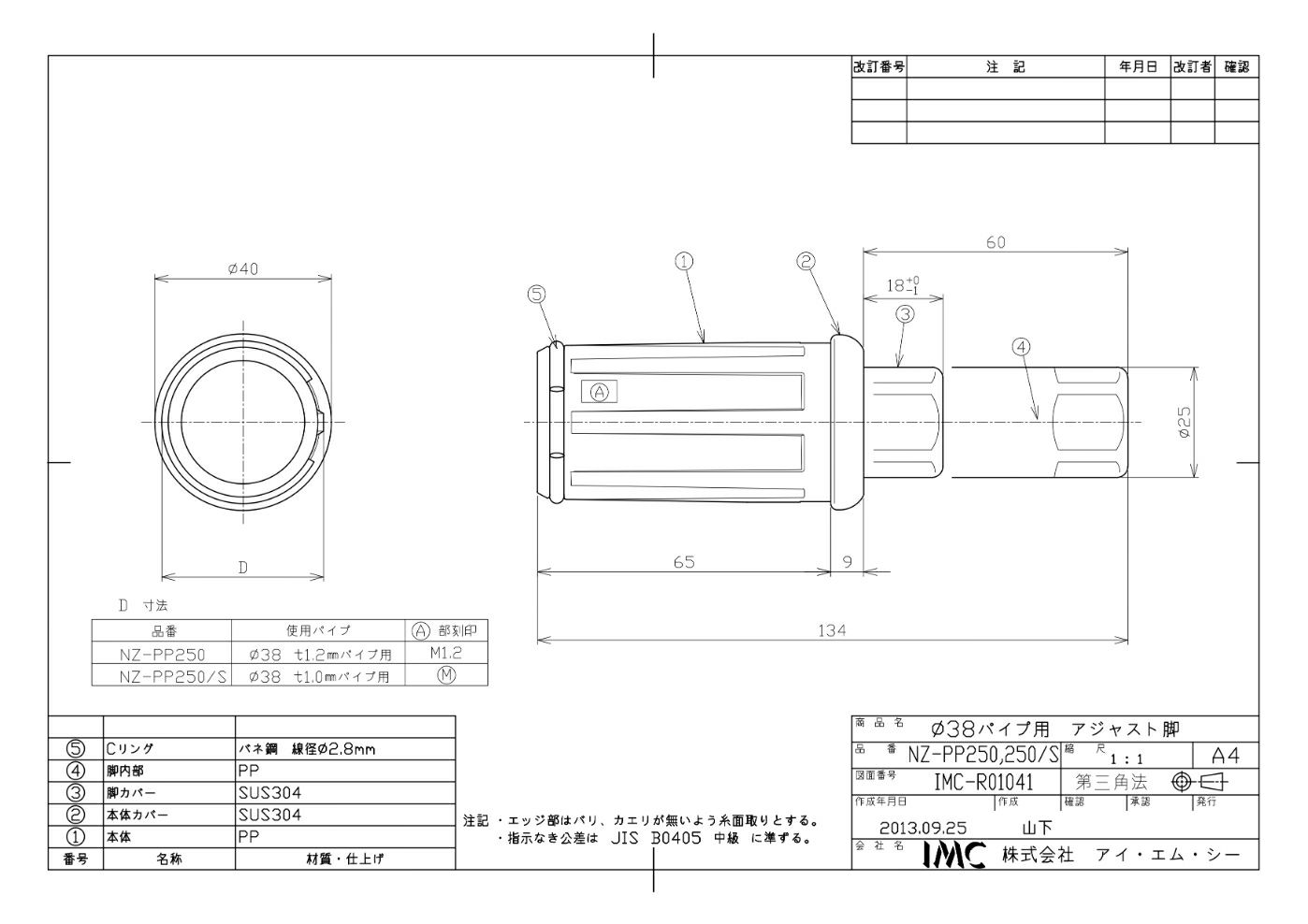 | サイズ | 【IMC】38Φ用パイプアジャスト脚PP製ステンカバー体1mm厚用 |