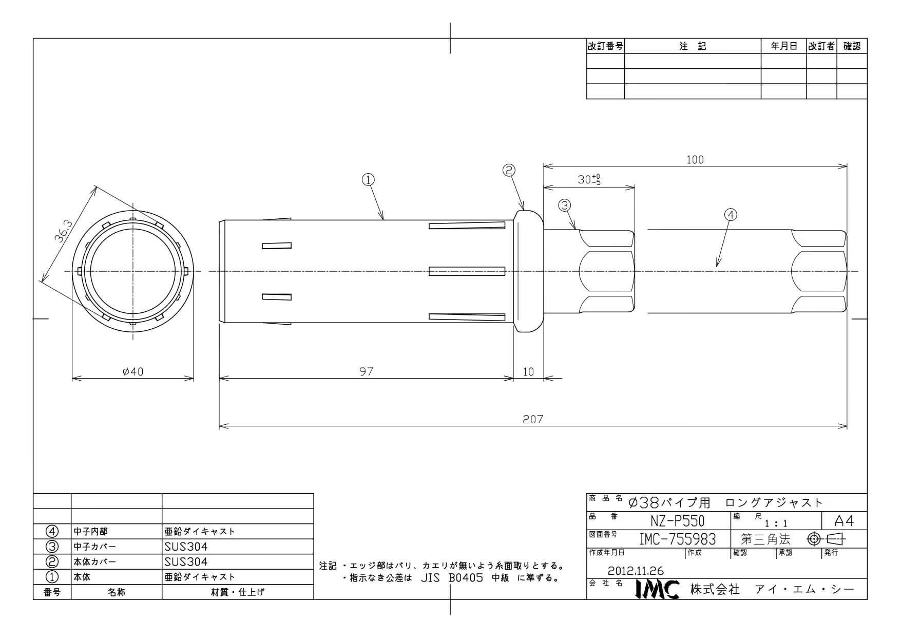 商品名:NZ-P550 38φパイプ用ロングアジャスト脚