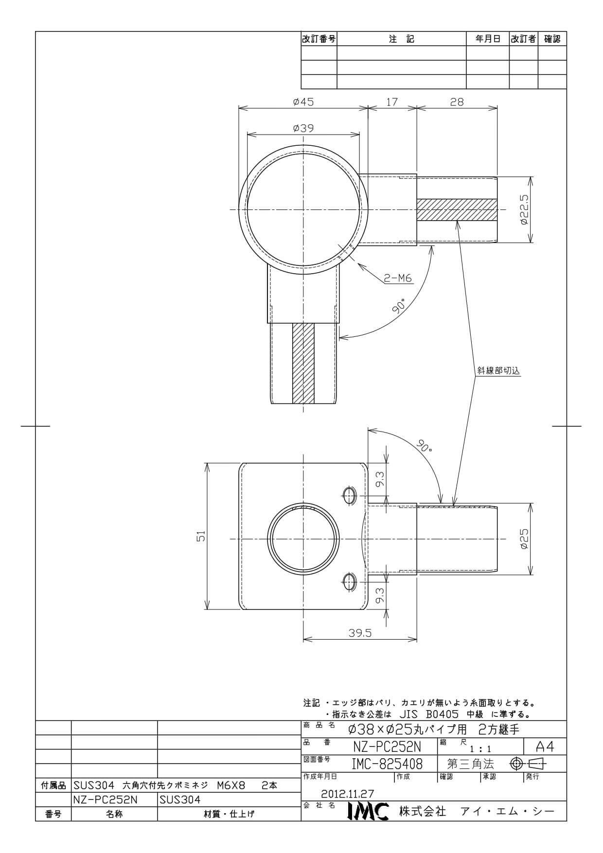 NZ-PC252N 304 二方継手 フラットタイプ