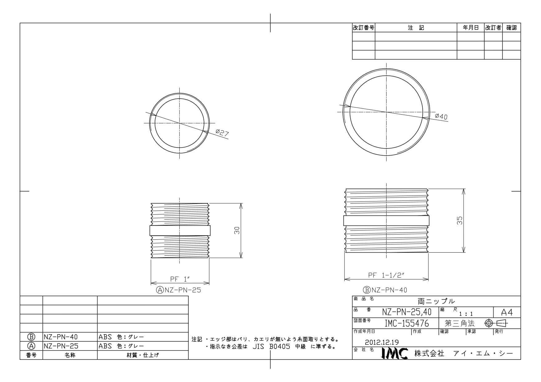 商品名:NZ-PN-40 エンビ 両ニップル 40A