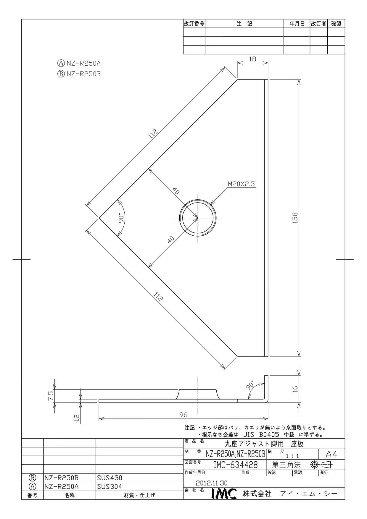 NZ-R250B 430 三角座 曲げ M20 t2.5mm