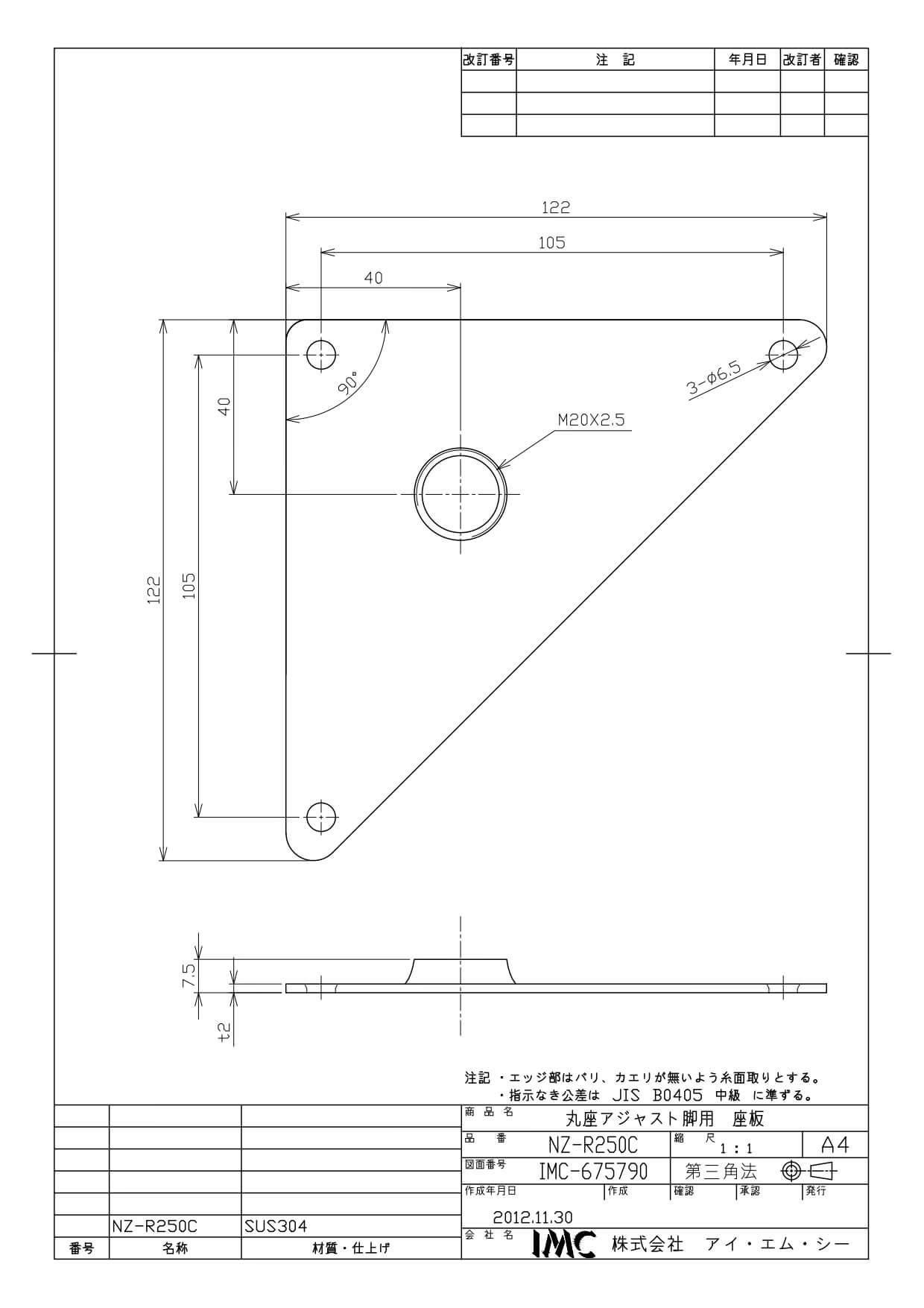 商品名:NZ-R250C 304 三角座 M20 t2.5mm