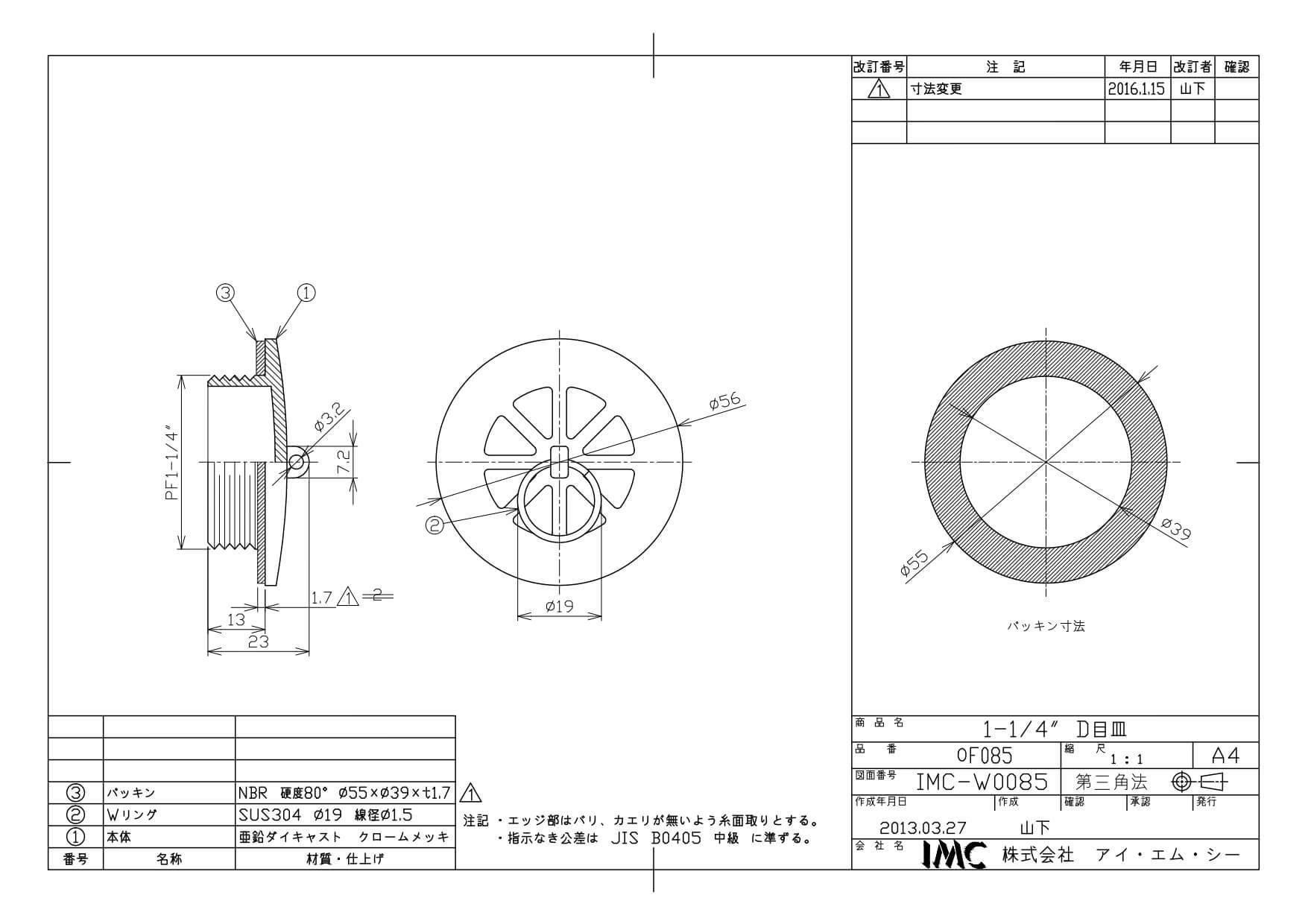 商品名:OF-85 1-1/4" D目皿 クロームメッキダイキャスト