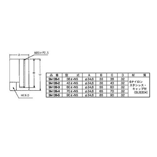 材質:6ナイロン、ステンレス キャップ付(SUS304)