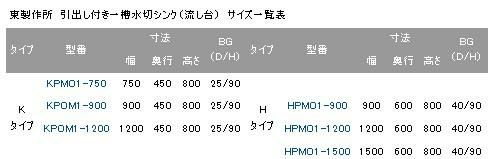 HPOM1-1500,HPOMC1-1500【東製作所】 引出付一槽水切シンク 幅1500×奥行600×高さ800mm