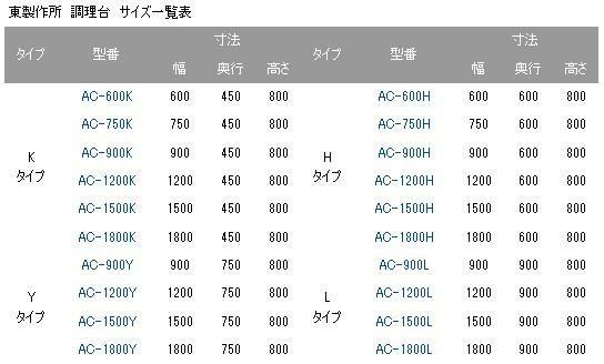 AC-1800K【東製作所】 調理台 幅1800×奥行450×高さ800mm