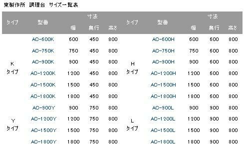 AC-750H【東製作所】 調理台 幅750×奥行600×高さ800mm