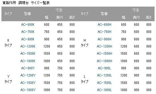 AC-1800H【東製作所】 調理台 幅1800×奥行600×高さ800mm