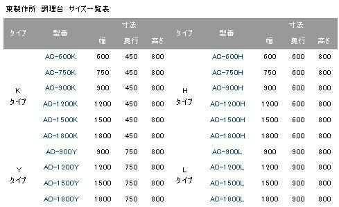 AC-900Y【東製作所】 調理台 幅900×奥行750×高さ800mm
