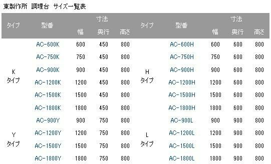 AC-1500Y【東製作所】 調理台 幅1500×奥行750×高さ800mm