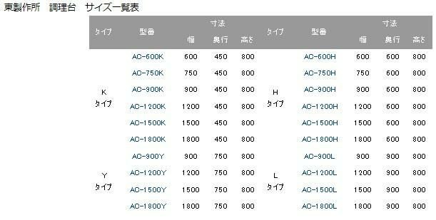 AC-900L【東製作所】 調理台 幅900×奥行900×高さ800mm