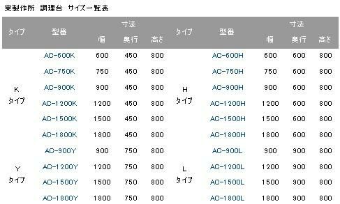 AC-1800L【東製作所】 調理台 幅1800×奥行900×高さ800mm
