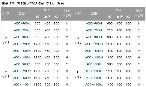 ACO-750K【東製作所】 引き出し付き調理台 幅750×奥行450×高さ800mm