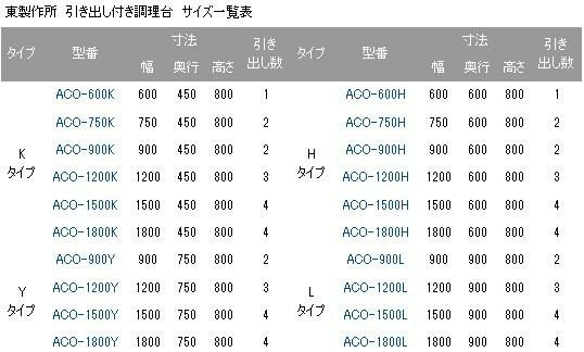 ACO-1500K【東製作所】 引き出し付き調理台 幅1500×奥行450×高さ800mm