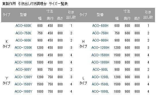 ACO-1800K【東製作所】 引き出し付き調理台 幅1800×奥行450×高さ800mm