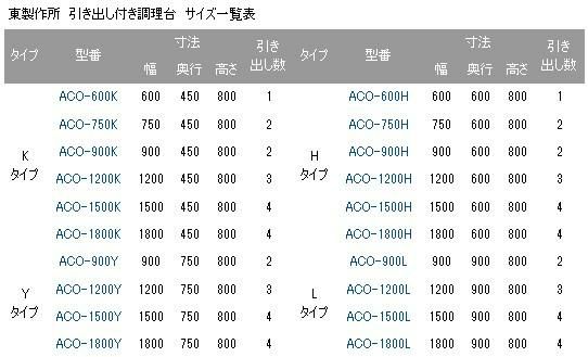 ACO-1200Y【東製作所】 引き出し付き調理台 幅1200×奥行750×高さ800mm
