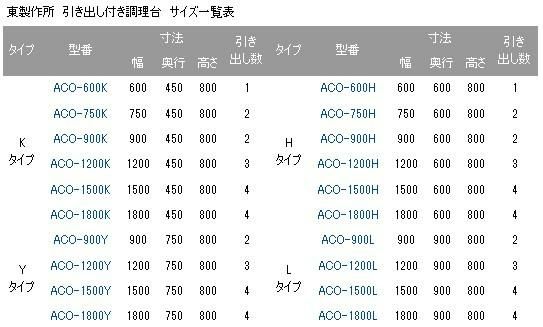 ACO-1500Y【東製作所】 引き出し付き調理台 幅1500×奥行750×高さ800mm