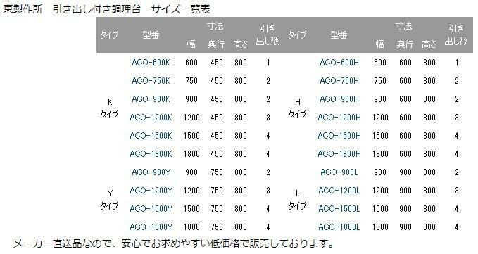 ACO-1200L【東製作所】 引き出し付き調理台 幅1200×奥行900×高さ800mm