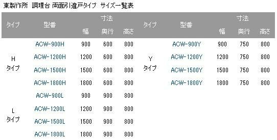 ACW-1800Y【東製作所】 調理台 両面引違戸 幅1800×奥行750×高さ800mm