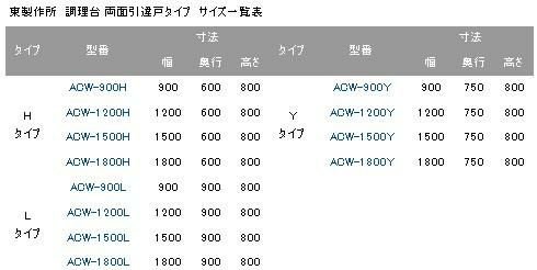 ACW-1200L【東製作所】 調理台 両面引違戸 幅1200×奥行900×高さ800mm