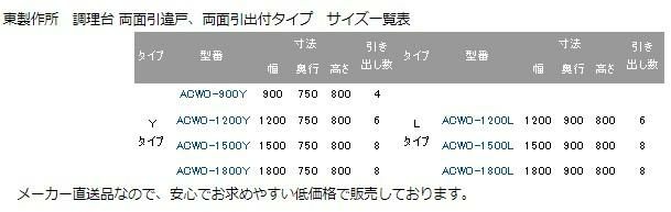 ACWO-1200L【東製作所】 両面引き出し付き調理台 幅1200×奥行900×高さ800mm