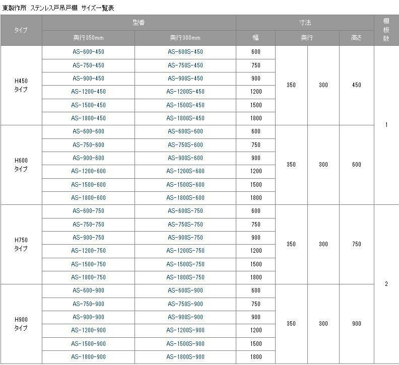 【東製作所】吊戸棚 ステンレス戸 AS-600-450 幅600×奥行350×高さ450mm