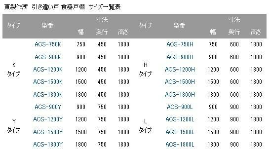 【東製作所】食器棚 ACS-1500H 幅1500×奥行600×高さ1800mm