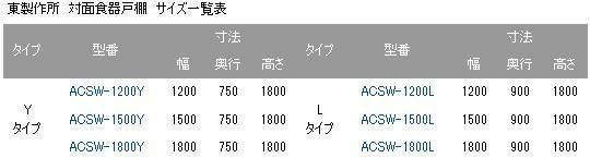 【東製作所】食器棚 両面引違戸 ACSW-1200L 幅1200×奥行900×高さ1800mm