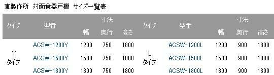 【東製作所】食器棚 両面引違戸 ACSW-1500L 幅1500×奥行900×高さ1800mm