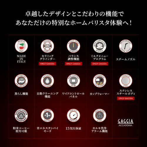 付属品:取扱説明書、粉末コーヒー用スプーン、ブリューングユニット用グリス、クリーニングブラシ、 インテンザ浄水フィルター、カルキ洗浄液(MEL-F2000)、ミルク洗浄液(MEL-F1000)、 コーヒーライン用クリーニングタブレット、定期メンテナンスについて(小冊子)