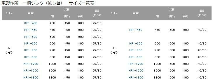 【東製作所】【組立式】一槽シンク KP1-400,KPC1-400