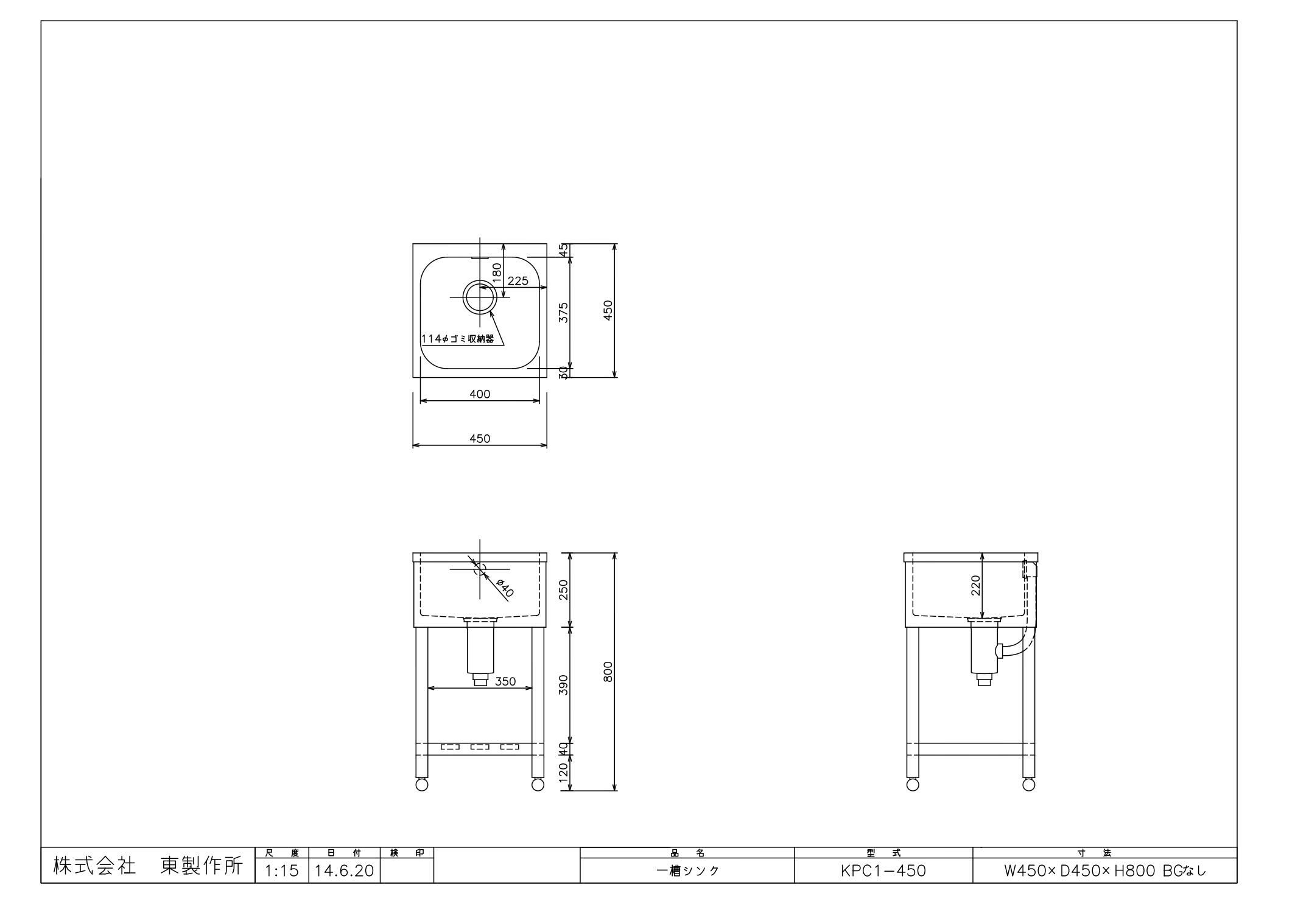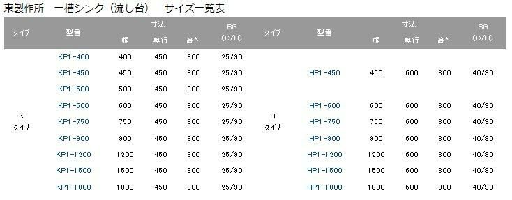 【東製作所】【組立式】一槽シンク KP1-450,KPC1-450