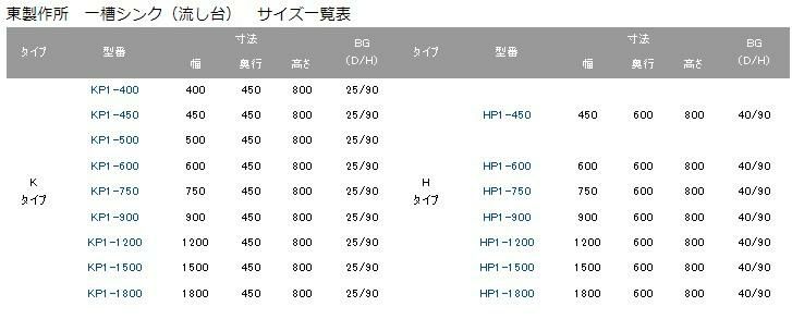 【東製作所】【組立式】一槽シンク HP1-600,HPC1-600