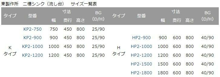 【東製作所】【組立式】二槽シンク KP2-750,KPC2-750