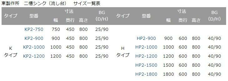 【東製作所】【組立式】二槽シンク KP2-1200,KPC2-1200