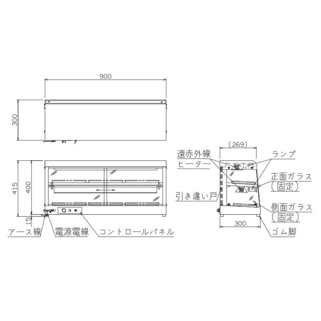 XSC-92/ニチワ電機/電気遠赤外線ホットショーケース 幅900×奥行300×高さ415mm