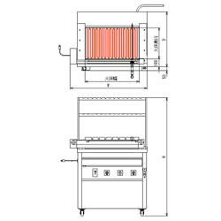 | ■ 商品について ■ | ■電気式焼物器ヒゴグリラー「シュラスコ焼機タイプ」 ■ 南米の名物料理!シュラスコの回転式グリラー シュラスコ料理とは、大串に塊肉を刺して焼くワイルドな串焼き料理です。 客前で焼いた肉をそぎ切りにしてサービスし、好みのソースで食べる南米の名物料理。 大串を回転させて自動的に焼くヒゴグリラーのシュラスコ焼機は、専門店に大好評をいただいているグリラーです。