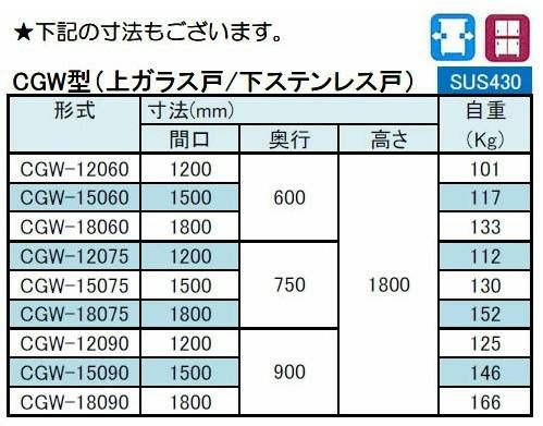 【シンコー】食器棚 両面 上ガラス戸 幅1200×奥行900×高さ1800 [CGW-12090]