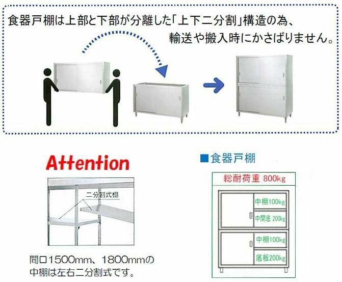 間口1500、1800の中棚は左右二分割式棚です。
