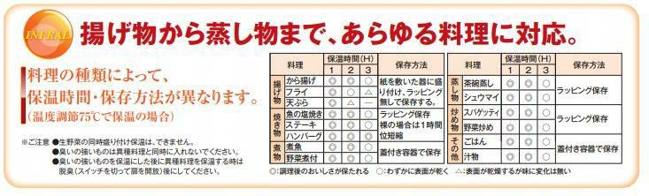 電源:AC100V 50/60Hz 温蔵方式は、庫内壁感熱式