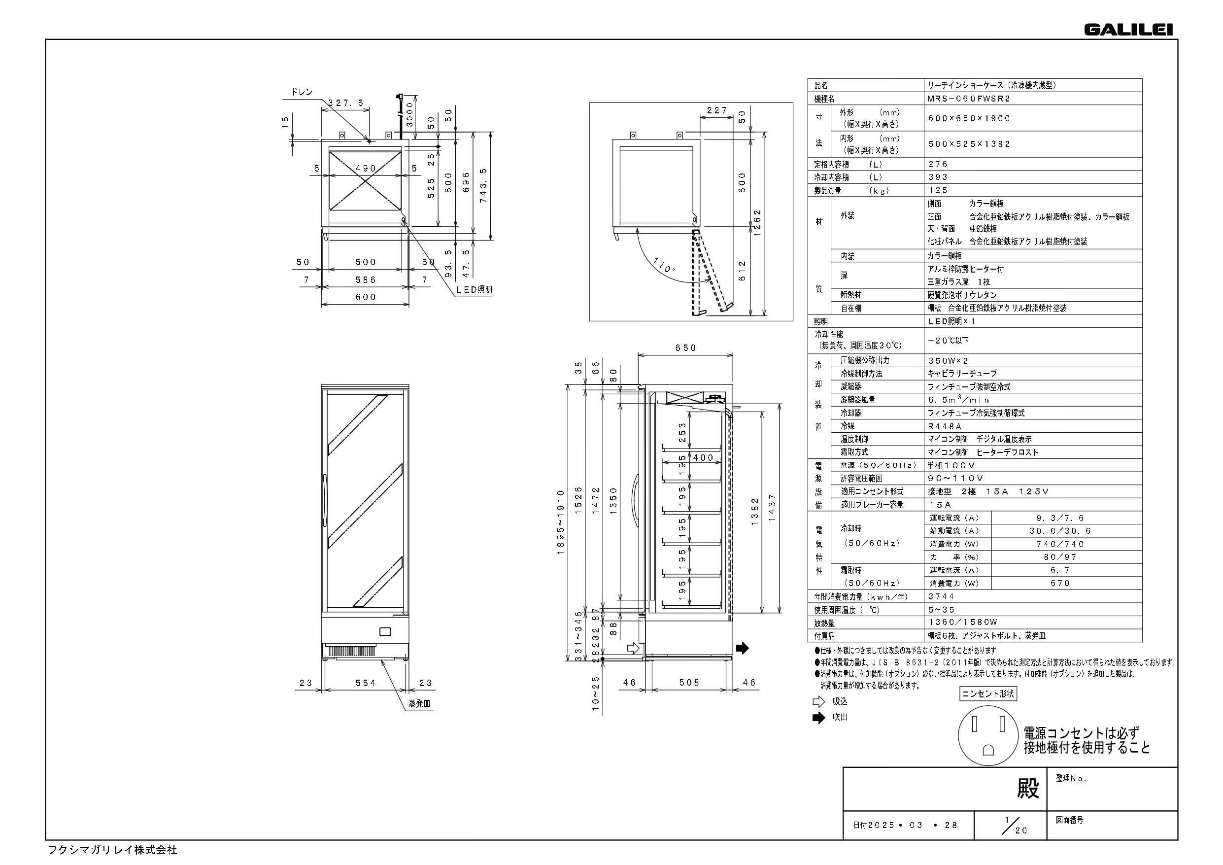 商品名:フクシマガリレイ 冷凍機内蔵型リーチインショーケース MRS-060FWSR2