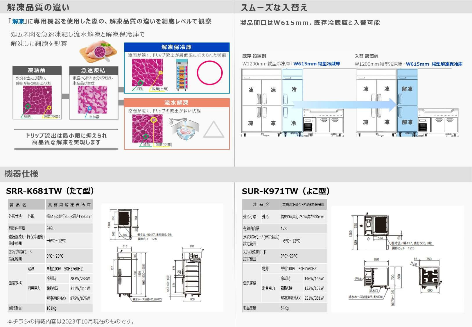 SUR-K971TW 【パナソニック】よこ型解凍保冷庫 幅890×奥行750×高さ800mm 単相100V