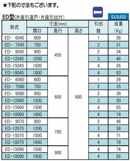 ED-7560 【シンコー】 調理台 引出2個付 幅750×奥行600×高さ800