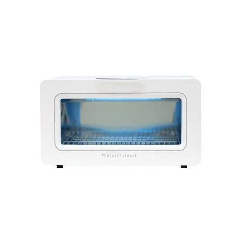 もう一度扉を閉めると自動でUVランプが点灯し、タイマーが作動します。扉の前面ガラスはUVカット機能がありますので、お客様の前でも安心してご使用いただけます。